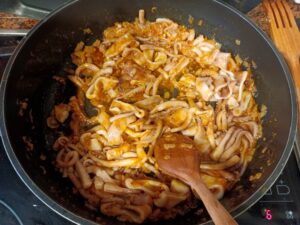 removemos muy bien para que se integre bien con la salsa durante 3-5 minutos.