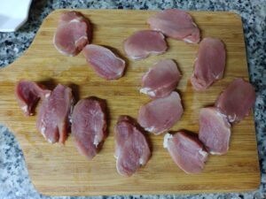 Cuchillo le vamos quitando todas la parte blanca del solomillo y después lo cortamos en rodajas de unos 1,5-2cm de grosor aproximadamente.