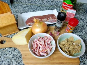 - Preparamos los ingredientes. Dejamos preparados los ingredientes en la encimera para disponer de ellos cuando los necesitemos.