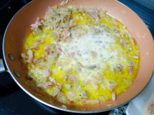 - Le echamos el Queso. Bajamos el fuego a fuego medio-suave (Al 6 de 9 en mi