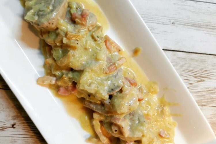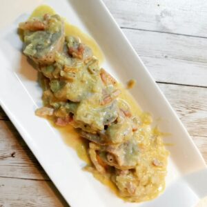 Solomillo de Cerdo en Salsa de Queso y Champiñones con Bacon